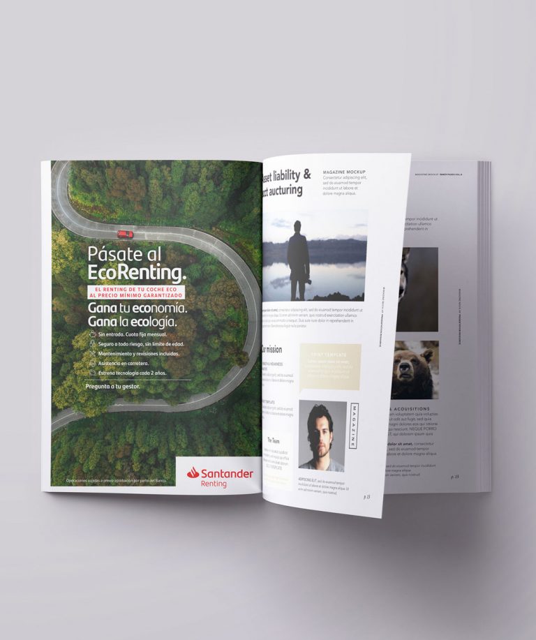 Nos encargamos del desarrollo completo, desde el concepto creativo hasta el naming: EcoRenting. A la hora de comunicar este lanzamiento, lo hicimos tanto de cara al público general (con vídeos, publicidad exterior, radio, prensa, digital, etc.) como al público interno (con fichas comerciales, carpetas, cartelería, etc.).