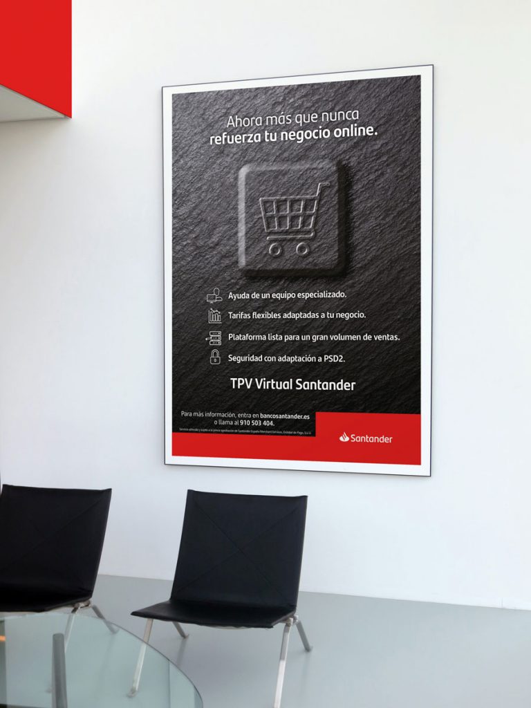 La TPV Virtual del Santander es una plataforma online de pago robusta y fiable, diseñada para optimizar el comercio electrónico. En Circus nos encargamos de realizar su campaña de lanzamiento, en la que tuvimos que comunicar estas cualidades mientras hacíamos saber a las empresas que, contratándola, se ponían en manos de los mejores expertos.